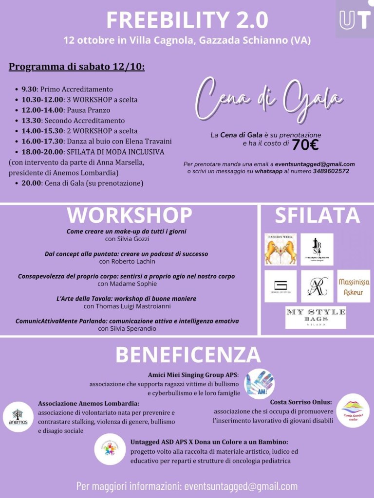 Un appuntamento imperdibile per chi crede nella forza dell’inclusione e del cambiamento! Sabato 12 ottobre 2024, la splendida Villa Cagnola di Gazzada (via Cagnola 21) ospiterà la seconda edizione di Freebility: Oltre gli Stereotipi. Una giornata ricca di emozioni, aperta a tutti e completamente gratuita, che si snoderà tra workshop, una sfilata di moda inclusiva e una Cena di Gala di beneficenza. Un evento che unisce arte, cultura e solidarietà con un unico obiettivo: fare la differenza.